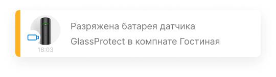 Вы сможете в любой момент проверить заряд аккумуляторов в приложении Ajax. При низком уровне заряда приложение автоматически отправит вам уведомление.