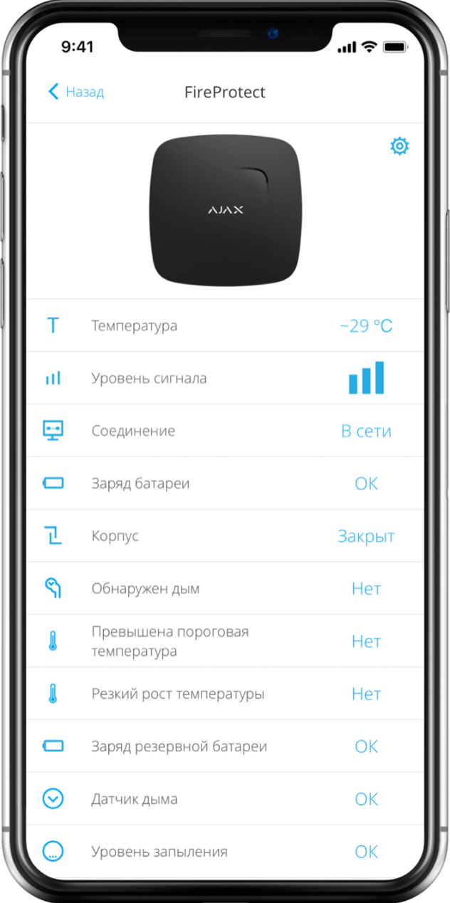 Каждые 12 секунд Ajax проверяет работу всех датчиков, камер и других подключённых к системе устройств.